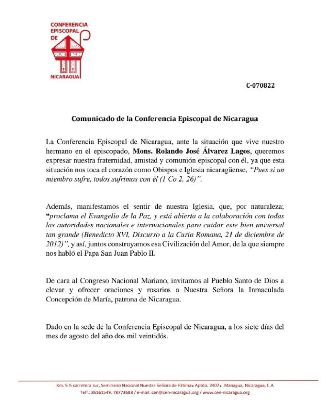 Comunicados 220807-Conferencia Episcopal de Nicaragua- Ante la situación que vive nuestro hermano obispo Rolando Álvarez Lagos Felipe Monroy 08 آب/أغسطس 2022 Share On Facebook Share On Twitter 2 Category Comunicados Hits 1248 times السابق التالي tweet