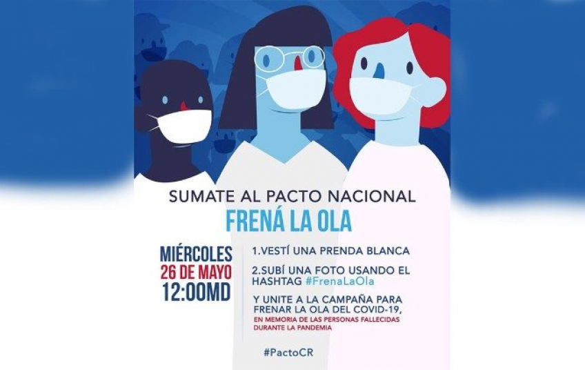 Bajo el lema “Frená la Ola”, este miércoles 26 de mayo, a las 12 mediodía, el gobierno, sectores e instituciones sociales invitaron a todas las personas a sumarse a un Pacto Nacional que busca unir al país, portando un distintivo de color blanco.