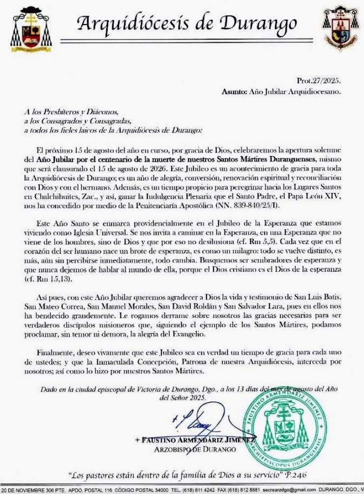 Iglesia América 250813-Arquidiócesis de Durango- Jubileo Santos Mártires Duranguenses Felipe Monroy 21 آب/أغسطس 2025 Share On Facebook Share On Twitter Category Uncategorised Hits 694 times السابق التالي tweet