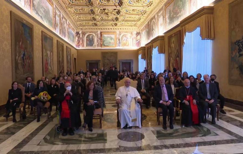 En la Sala del Consistorio, el papa Francisco reflexionó junto a los homenajeados sobre la esencia del periodismo:"Al periodismo no se llega realmente eligiendo una profesión, sino más bien como lanzándose a una misión; un poco como el médico, que estudia y trabaja para que se cure el mal en el mundo. Su misión [del periodista] es explicar el mundo, hacerlo menos oscuro, hacer que los que viven allí lo teman menos y miren a los demás con mayor conciencia, y también con más confianza. No es una misión fácil. Es difícil pensar, meditar, profundizar, detenerse a recoger ideas y estudiar los contextos y precedentes de una noticia. El riesgo, lo sabes bien, es el de dejarse aplastar por la noticia en lugar de poder darle sentido. Por eso les animo a conservar y cultivar ese sentido de misión que está en el origen de su elección. Y lo hago con tres verbos que creo que pueden caracterizar al buen periodismo:escuchar, profundizar y contar".