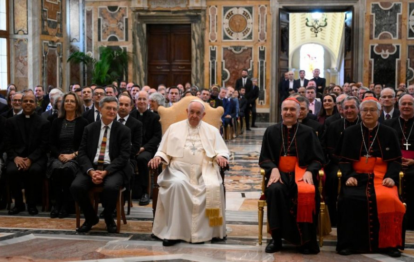 "La comunicación es, por decirlo así, el oficio de los vínculos, dentro de los cuales la voz de Dios resuena y se hace escuchar", afirmó el Pontífice en su discurso.