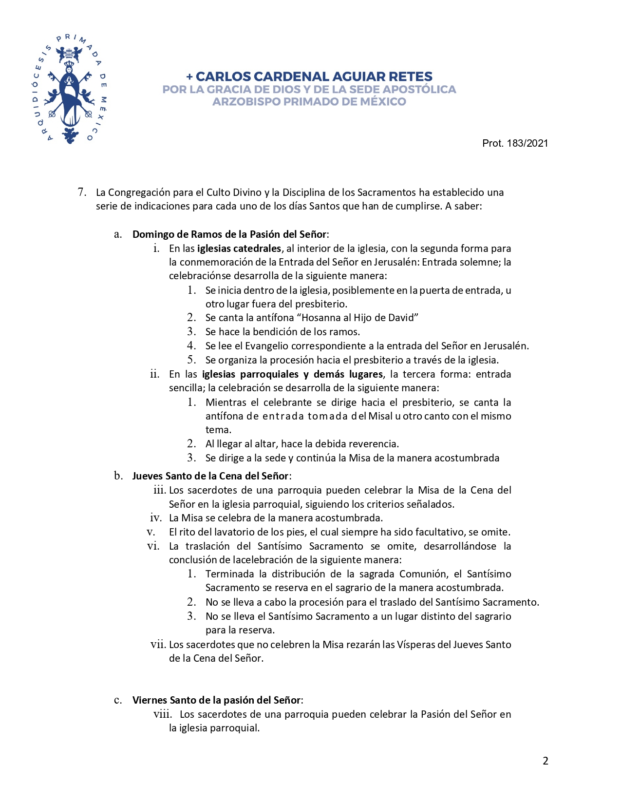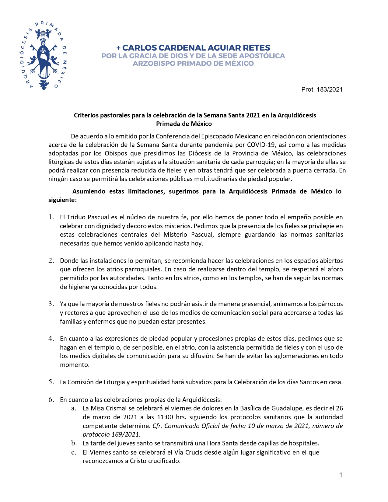 Comunicados 210320-Arquidiócesis de México- Criterios Pastorales para la Celebración de la Semana Santa 2021 Felipe Monroy 20 Marzo 2021 Share On Facebook Share On Twitter Category Comunicados Hits 2015 times Anterior Siguiente tweet