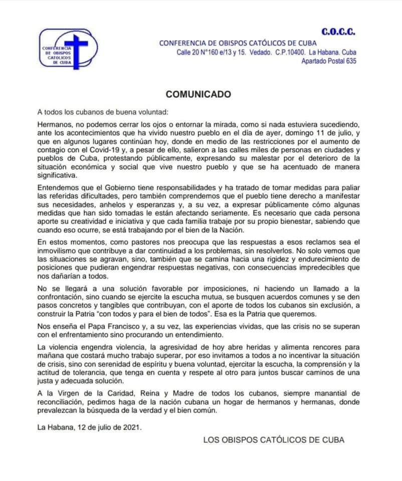 Comunicados 210712-Conferencia de Obispos Católicos de Cuba-No podemos cerrar los ojos o entornar la mirada Felipe Monroy 12 Julio 2021 Share On Facebook Share On Twitter Category Comunicados Hits 1548 times Anterior Siguiente tweet