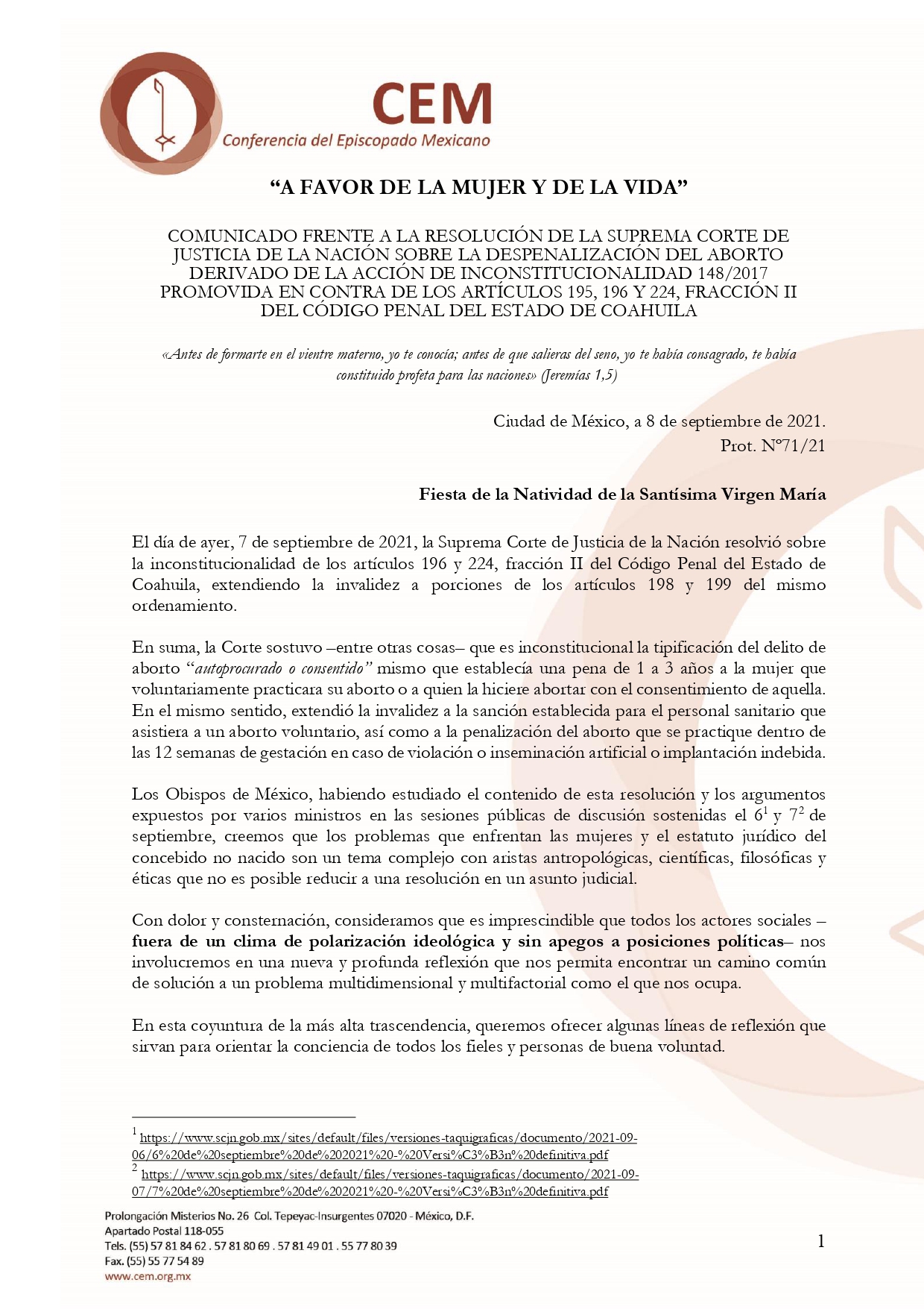 Comunicados 210908-Conferencia del Episcopado Mexicano-A favor de la mujer y de la vida Felipe Monroy 08 Septiembre 2021 Share On Facebook Share On Twitter Category Comunicados Hits 1510 times Anterior Siguiente tweet