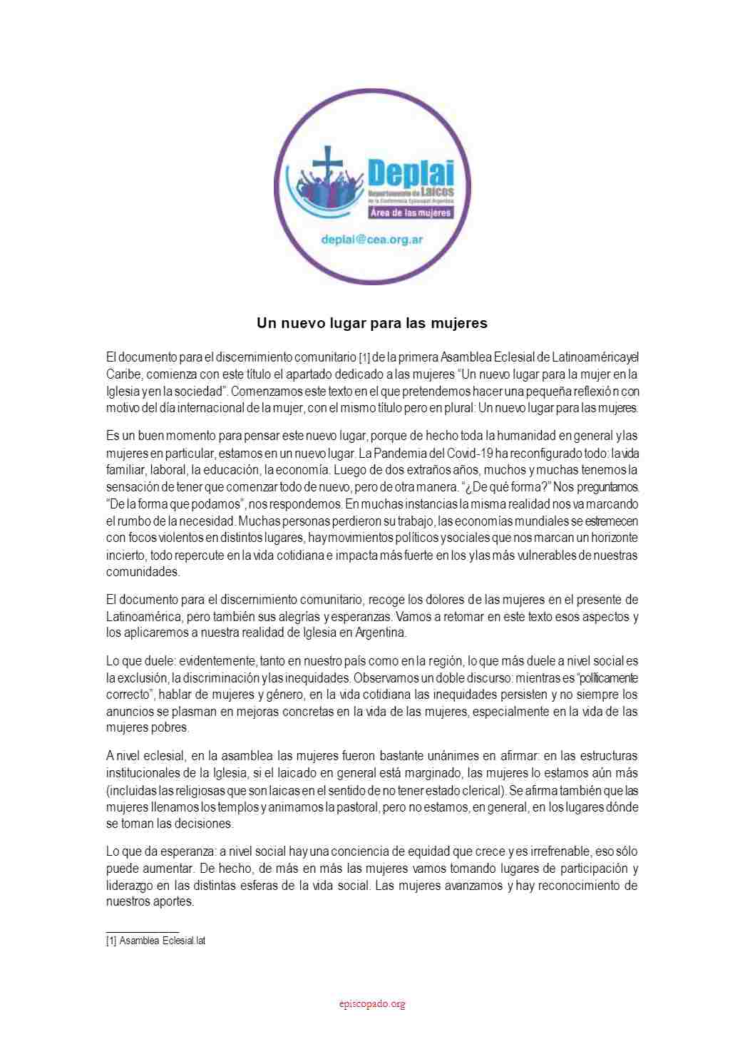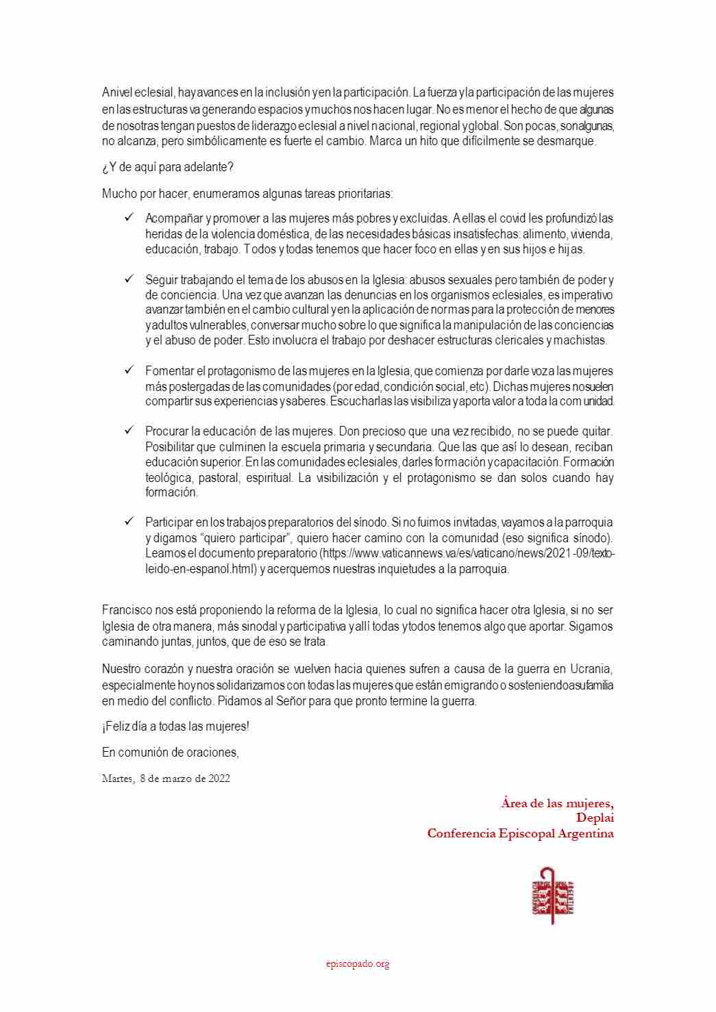 Comunicados 220308-Departamento de Laicos de la Conferencia Episcopal Argentina-Un nuevo lugar para las mujeres Felipe Monroy 08 Marzo 2022 Share On Facebook Share On Twitter Category Comunicados Hits 1640 times Anterior Siguiente tweet