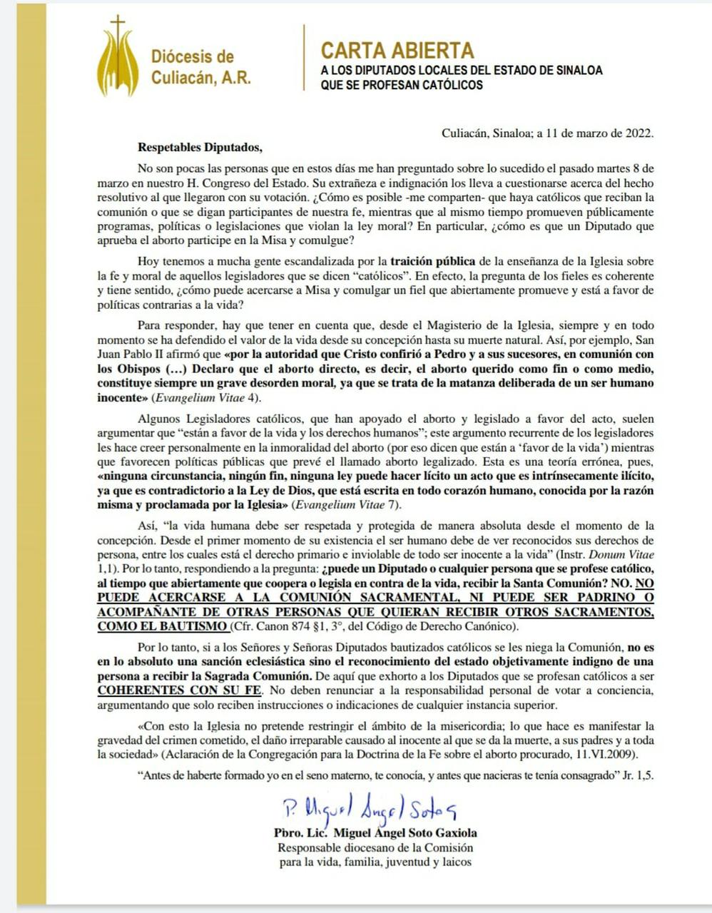 Comunicados 220311-Diócesis de Culiacán-Carta abierta a los diputados locales del estado de Sinaloa Felipe Monroy 11 Marzo 2022 Share On Facebook Share On Twitter Category Comunicados Hits 1605 times Anterior Siguiente tweet