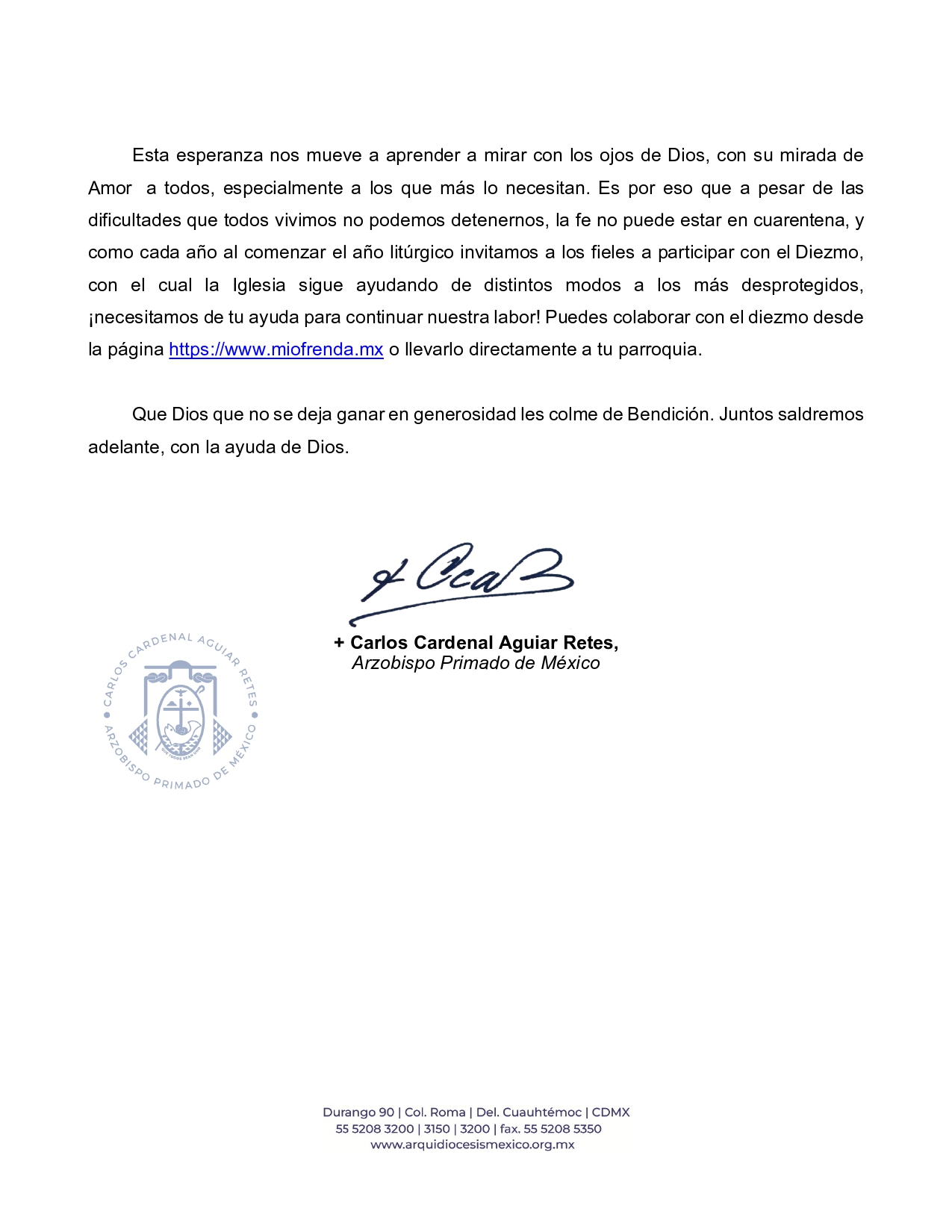 Comunicados 201201-Arquidiócesis de México-Este 2020 hemos vivido un tiempo difícil (Diezmo) Felipe Monroy 01 Diciembre 2020 Share On Facebook Share On Twitter Category Comunicados Hits 1992 times Anterior Siguiente tweet