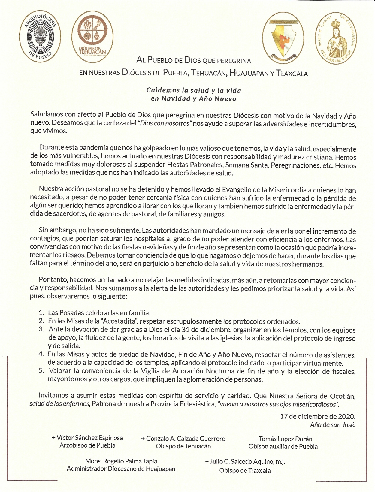 Comunicados 201217-Provincia Eclesiástica de Puebla-Cuidemos la salud y la vida en Navidad y Año Nuevo Felipe Monroy 18 December 2020 Share On Facebook Share On Twitter Category Comunicados Hits 1856 times Prev Next tweet