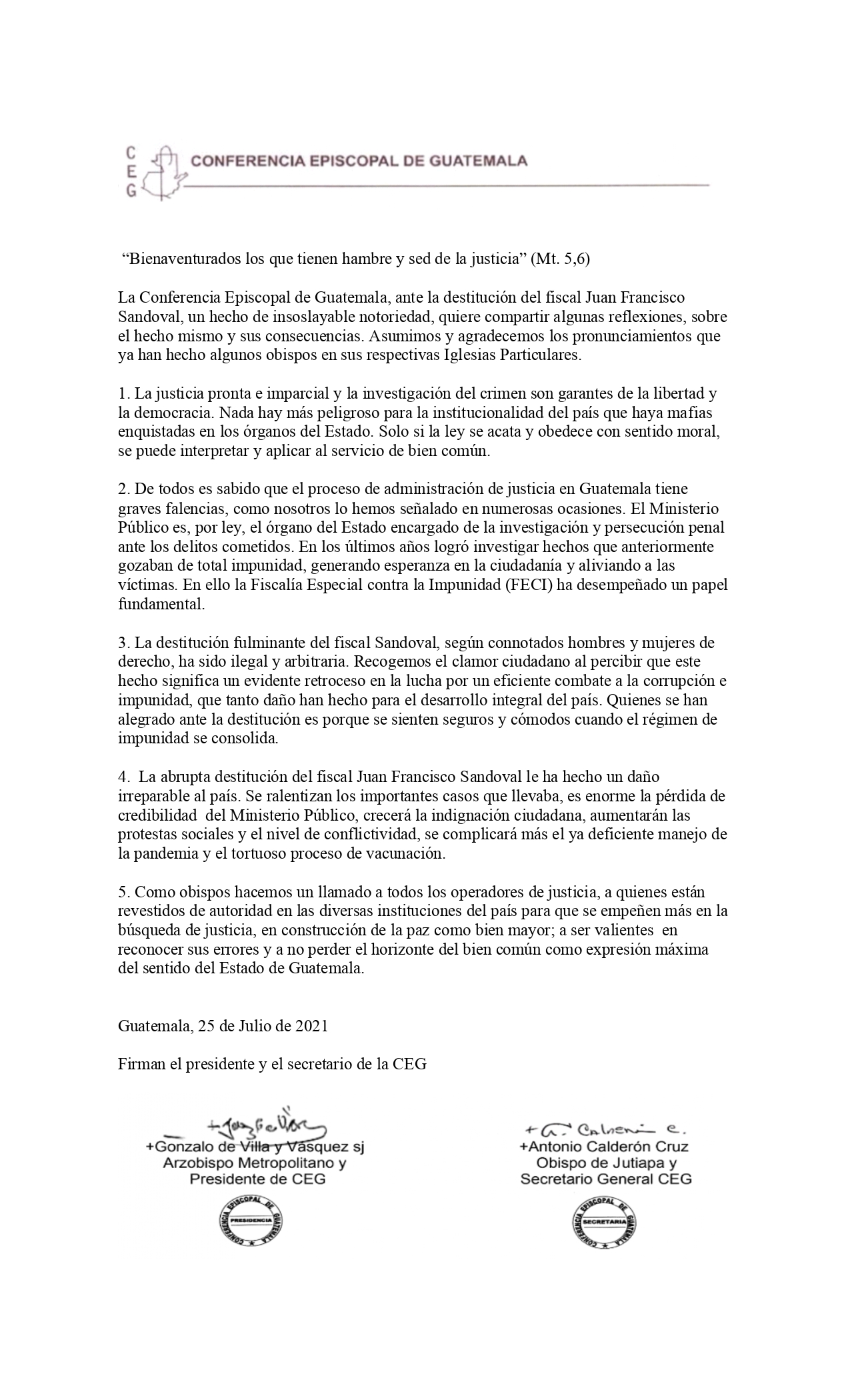 Comunicados 210725-Conferencia Episcopal de Guatemala-Bienaventurados los que tienen hambre y sed de justicia Felipe Monroy 25 July 2021 Share On Facebook Share On Twitter Category Comunicados Hits 1563 times Prev Next tweet