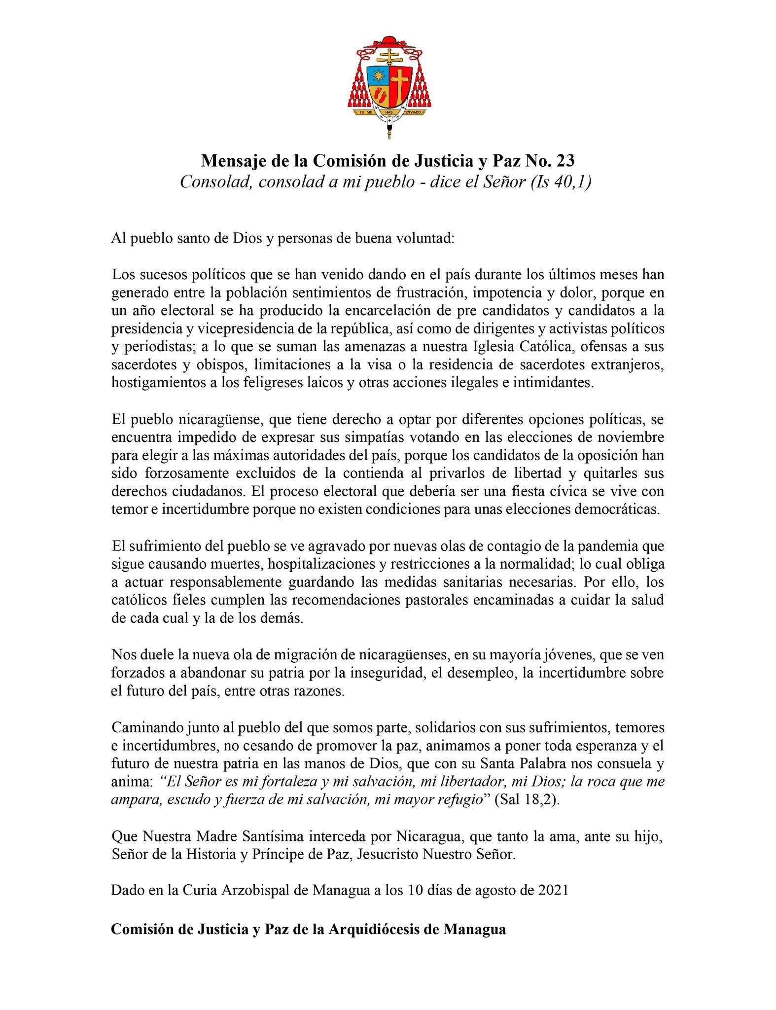 Comunicados 210810-Arquidiócesis de Managua-Consolad, consolad a mi pueblo; dice el Señor Felipe Monroy 10 August 2021 Share On Facebook Share On Twitter Category Comunicados Hits 1768 times Prev Next tweet
