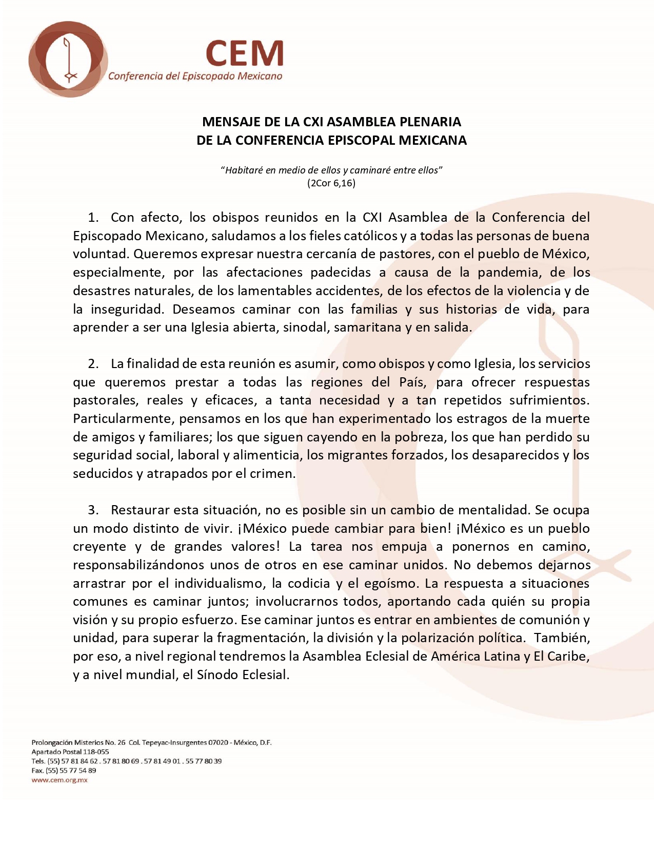 Comunicados 211110-Conferencia del Episcopado Mexicano-Mensaje de la CXI Asamblea Plenaria Felipe Monroy 10 November 2021 Share On Facebook Share On Twitter Category Comunicados Hits 1589 times Prev Next tweet