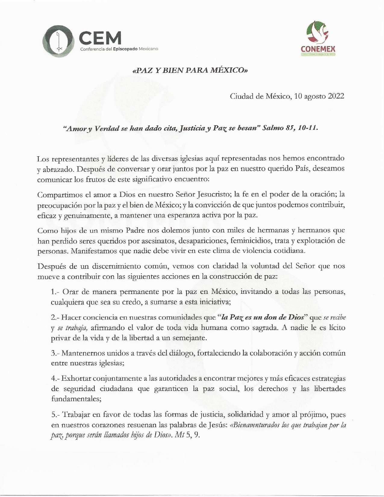 Comunicados 220810 - CEM/CONEMEX - Paz y Bien para México Felipe Monroy 10 August 2022 Share On Facebook Share On Twitter Category Comunicados Hits 2564 times Prev Next tweet