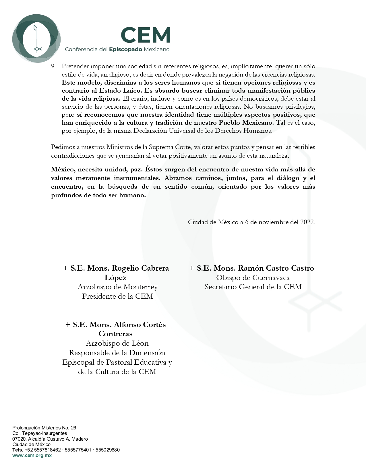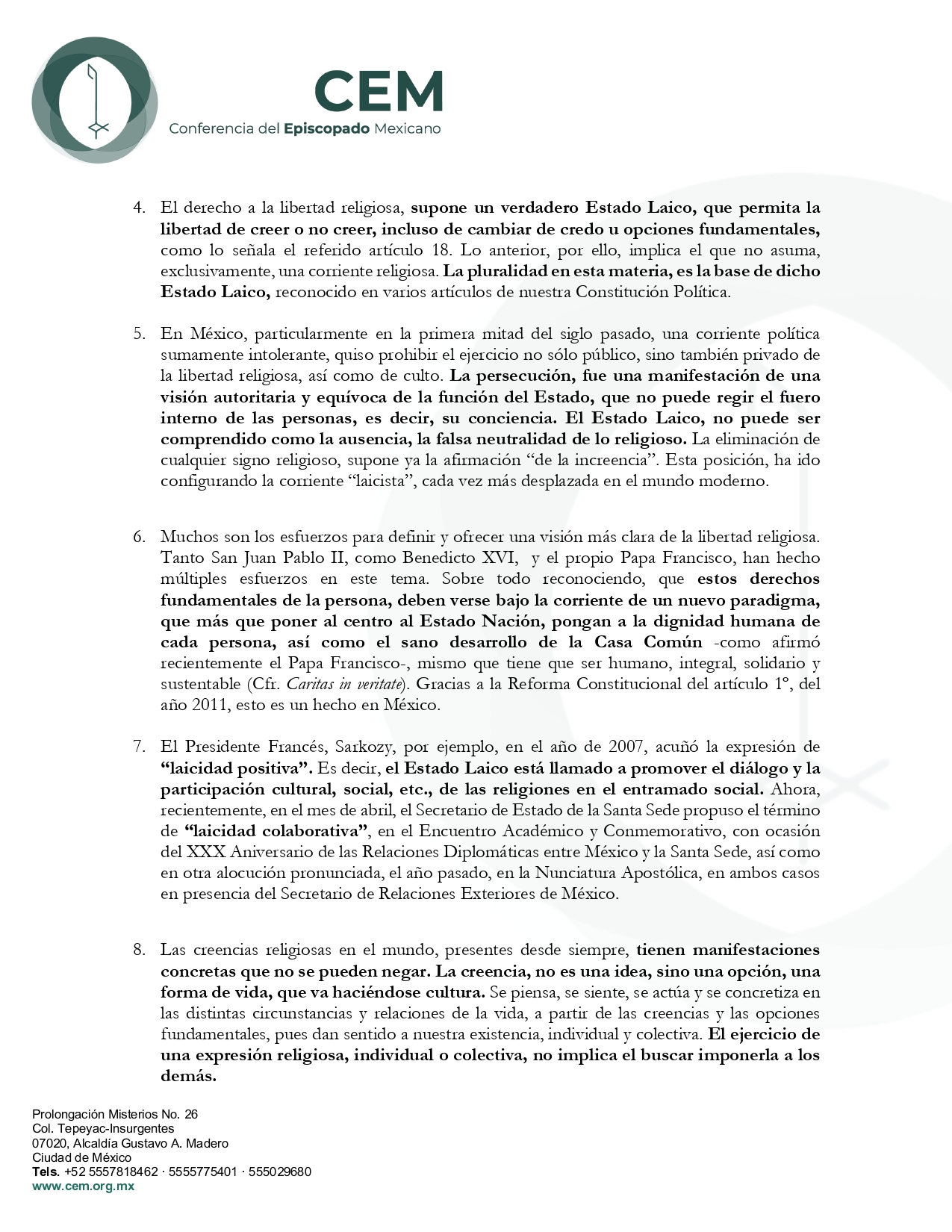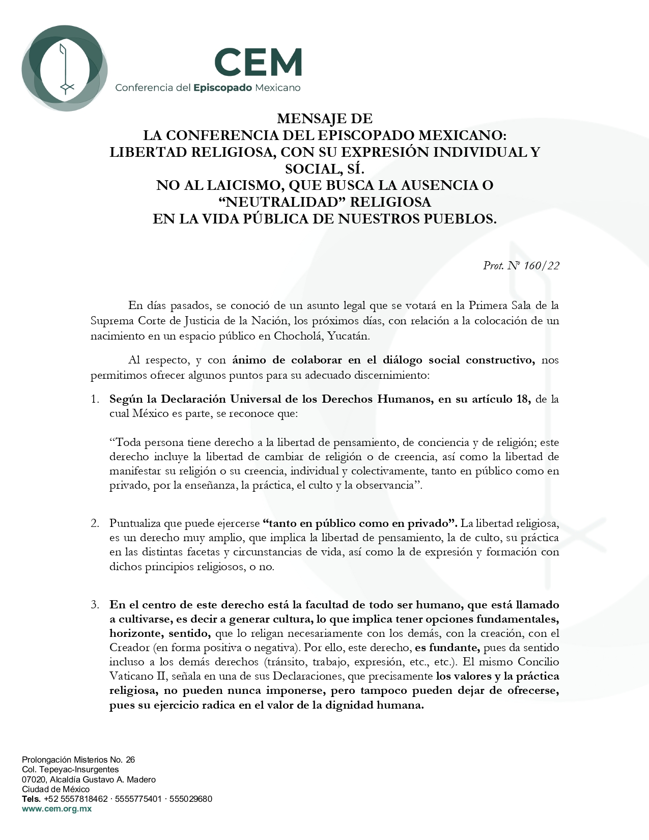 Comunicados 221106-Conferencia del Episcopado Mexicano-Sí a la libertad religiosa, no al laicismo Felipe Monroy 06 November 2022 Share On Facebook Share On Twitter Category Comunicados Hits 1370 times Prev Next tweet