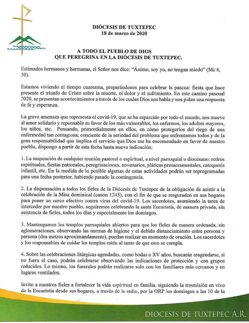 Comunicados 200318-Diócesis de Tuxtepec-Estamos viviendo el tiempo cuaresmal Felipe Monroy 18 March 2020 Share On Facebook Share On Twitter Category Comunicados Hits 1800 times Prev Next tweet