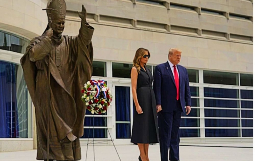 El martes 2 de junio el presidente Trump y su esposa Melania acudieron al santuario nacional San Juan Pablo II en el noreste de Washington, fue el segundo día consecutivo que el mandatario utilizaba símbolos religiosos como estrategia política en la crisis desatada por el asesinato de George Floyd por parte de cuerpos policiacos, pues el lunes acudió a los servicios religiosos de la iglesia episcopaliana de San Juan para posar con la Biblia frente al templo y posteriormente frente a la Casa Blanca.