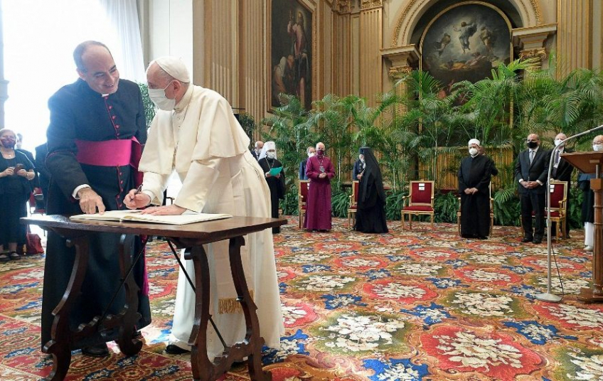 En el día del primer aniversario de la encíclica Fratelli tutti dedicada a la fraternidad humana, el papa Francisco se reunió con científicos, expertos y líderes religiosos (entre ellos, el gran imán de al-Azhar, Ahmad al-Tayyeb, y el Patriarca de Constantinopla, Bartolomé I) para el encuentro que se anticipa a la conferencia anual de la ONU sobre el clima que se celebrará en Glasgow (Escocia) del 31 de octubre al 12 de noviembre.