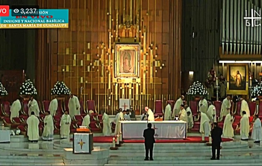 Sin la tradicional presencia de fieles en la Basílica de Guadalupe, el arzobispo presidió los tradicionales oficios del Jueves Santo y tampoco realizó el ritual del Lavatorio de Pies tal como recomendó la Congregación para el Culto Divino. En su mensaje homilético, transmitido por señal de televisión abierta y transmisiones en redes sociales, el cardenal reflexionó sobre los acentos en los misterios instituidos por Jesús.