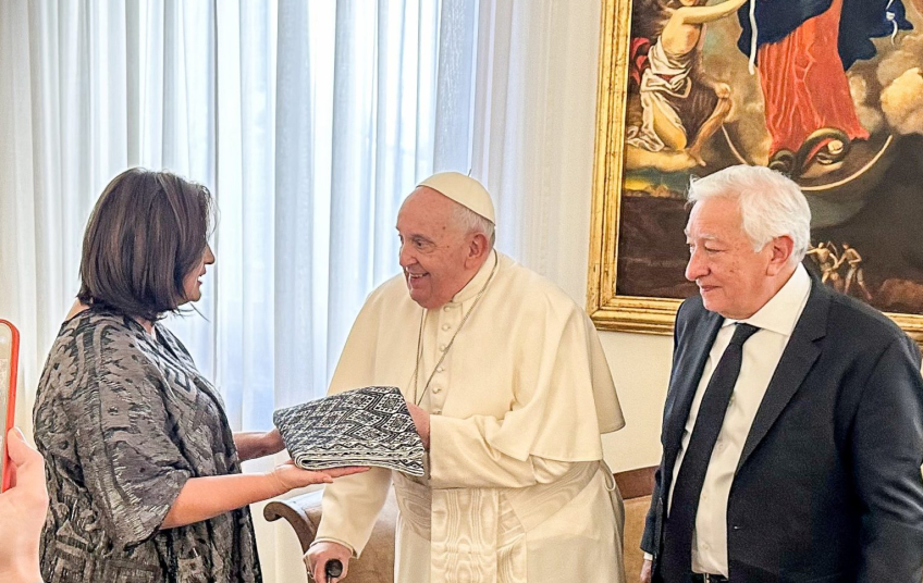 En su visita al líder de la Iglesia católica fue acompañada por su esposo y sus dos hijos, asegurando que no utilizó recursos del presupuesto público para estos fines.
